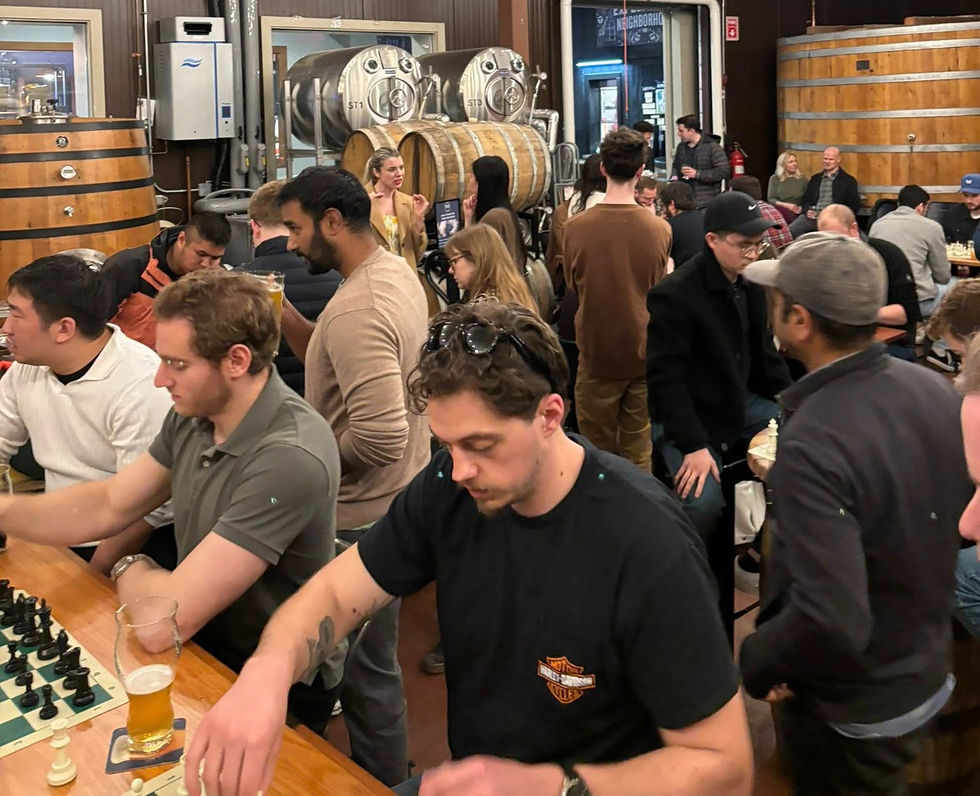 Following the success of our first event in January, we held our second 'Beers and Checkmates' event again at Sam Adams Brewery on Friday, April 17, 2026. There was a definite increase in attendance compared to our first event. We had a later start time of 7pm and the event ended at 9pm. Thanks to Alex and Adam for organizing and running. Thanks to all for attending. We hope to run another 'Beers and Checkmates' during the summer months.
